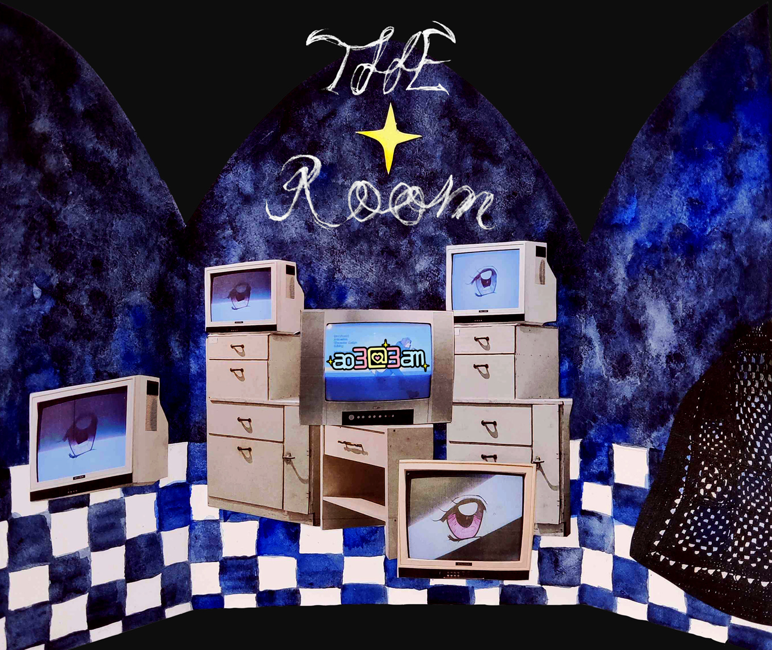 Hagioskoopin kolmas versio on ylitsepursuava suojapaikka. THE Room vie näyttelyvieraan aikaan, missä seinät vuorattiin lehtien fanijulisteilla ja välit tilkittiin internetistä perheen mustesuihkutulostimella tulostettuihin kuviin.